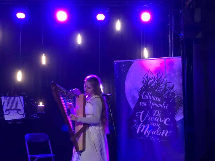 Op zondag om 17:30 uur mocht Cathinca harpspelen op het muziekpodium in The Great Hall! Je kon meteen merken dat ze een groot netwerk heeft opgebouwd: de bankjes zaten vol en mensen vroegen de hele dag door hoe laat ze moest spelen. Ik begrijp ook wel waarom: ze speelde en zong prachtig, een repertoire dat ook vele van mijn eigen lievelingsmuziek in zich droeg. Nightwish, Within Temptation, Loreena McKennit, de Outlander Theme Song, Disneyliedjes… Het kwam allemaal voorbij!