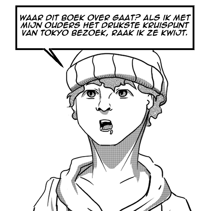 Marijke F. Jansen‘Het leek me voor dit verhaal leuk om eens te spelen met het begrip “taal”. Jongeren in Japan leren geen Engels op school, waardoor de kans op een gigantische taalbarriere daar helemaal niet zo klein is. In Nederland is dat bijna ondenkbaar geworden. Bovendien vind ik stedentrips zelf erg leuk. Ik wilde er een backpack-achtig verhaal van maken waarin je als lezer de stad kunt ontdekken en waardoor je hopelijk zelf ook nieuwsgierig wordt naar de plekjes die genoemd worden in het verhaal.’